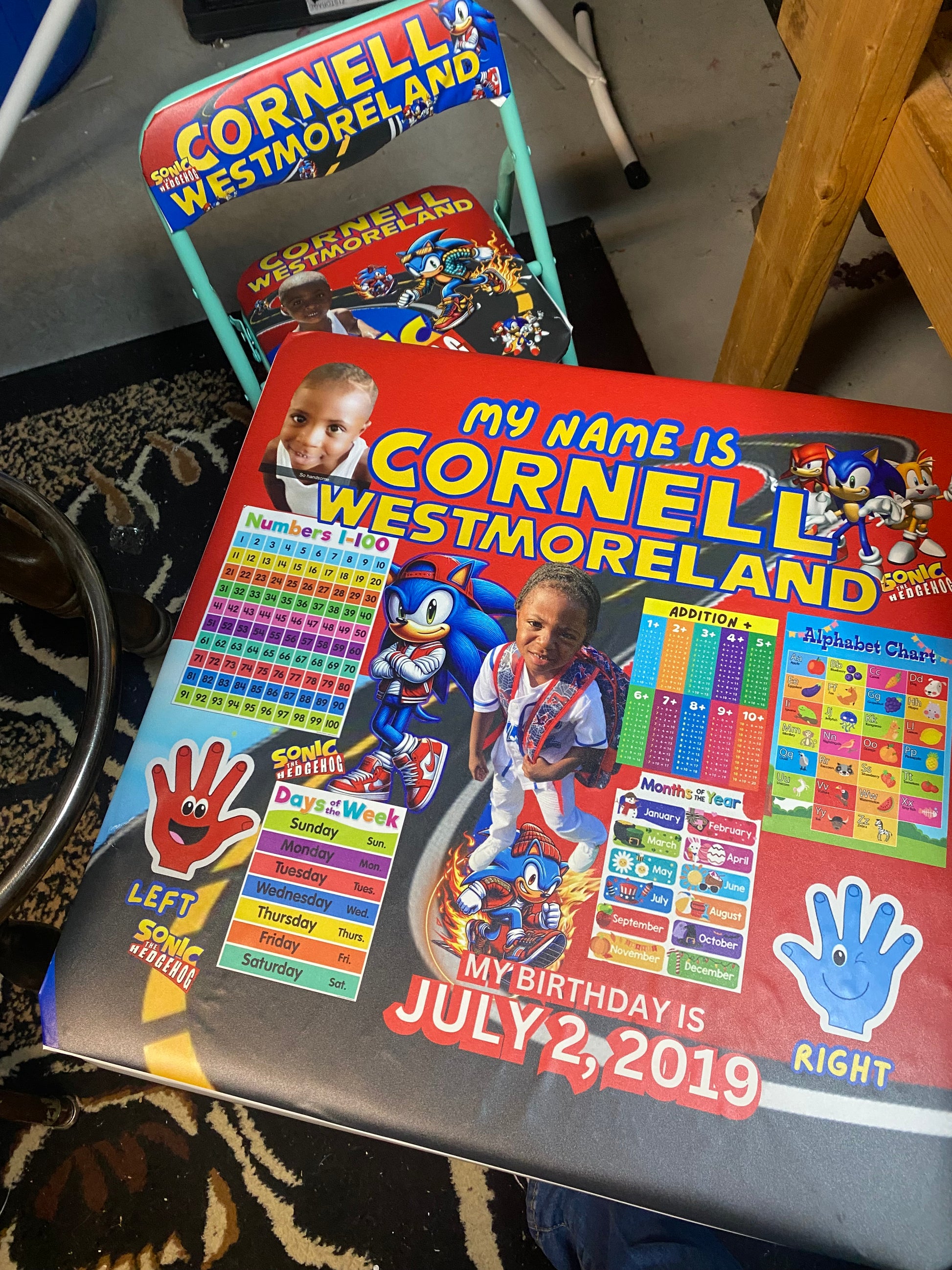 CUSTOM ACTIVITY TABLE. CUSTOMIZED WITH CHILDS PICTURE, NAME, BIRTHDAY AND AGE APPROPRIATE ACTIVITY SHEETS